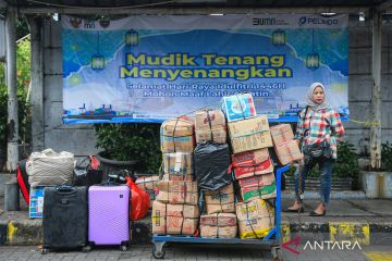 Pemudik dengan barang bawaannya sebelum masuk ke dalam kapal Pelni KM Dobonsolo di Pelabuhan Tanjung Priok, Jakarta, Selasa (25/3/2025). PT Pelni mencatat sebanyak 1.600 penumpang mudik menggunakan KM Dobonsolo dengan tujuan Surabaya, Makassar, Bau-Bau, Ambon, Banda, Tual, Dobo, Kaimana, dan Fak-Fak. ANTARA FOTO/Sulthony Hasanuddin/nz