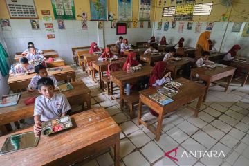 Sejumlah siswa sekolah dasar menyantap makanan bergizi gratis di SDN 10 Kendari, Kendari, Sulawesi Tenggara, Senin (6/1/2025).Badan Gizi Nasional (BGN) melaksanakan program makan bergizi gratis perdana di sejumlah sekolah di Kota Kendari guna mematangkan ketepatan waktu distribusi serta kecukupan kandungan gizinya. ANTARA FOTO/Andry Denisah/rwa.
