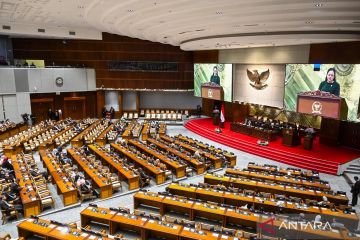 Suasana rapat paripurna ke-16 masa persidangan II Tahun Sidang 2024-2025 di Kompleks Parlemen, Senayan, Jakarta, Selasa (25/3/2025). Rapat paripurna tersebut dalam rangka penutupan masa persidangan II Tahun Sidang 2024-2025. ANTARA FOTO/Rivan Awal Lingga/nz