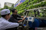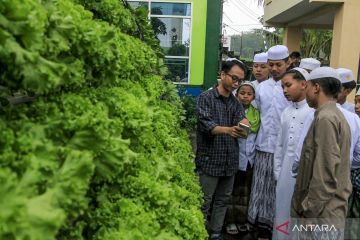 Teknisi XL Axiata menunjukan cara kerja sistem monitoring budi daya sayuran hidroponik melalui smartphone kepada santri di Pondok Pesantren Tholabie Classic International Boarding School (CIBS), Malang, Jawa Timur, Rabu (25/9/2024). Melalui Program Pesantren Digital, PT XL Axiata Tbk terus berupaya melakukan pemberdayaan berbasis solusi digital yang bisa dimanfaatkan oleh kalangan pondok pesantren di seluruh Indonesia salah satunya dengan pemanfaatan solusi berbasis internet of things (IoT) dalam memonitoring, auto feeding nutrisi, serta pemantauan suhu lingkungan tempat budidaya sayuran hidroponik guna meningkatkan ekonomi pesantren. ANTARA FOTO/Muhammad Mada/aww.